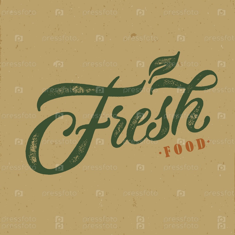 Векторный дизайн типографии свежих продуктов для центров здоровья, органических и вегетарианских магазинов, плакат, логотип. Свежие продукты бесплатный векторный текст. Каллиграфические надписи ручной работы. Векторная иллюстрация