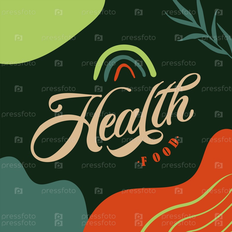 Векторный дизайн типографии здоровой пищи для медицинских центров, органических и вегетарианских магазинов, плакат, логотип. Векторный текст здоровой пищи. Каллиграфические надписи ручной работы. Векторная иллюстрация