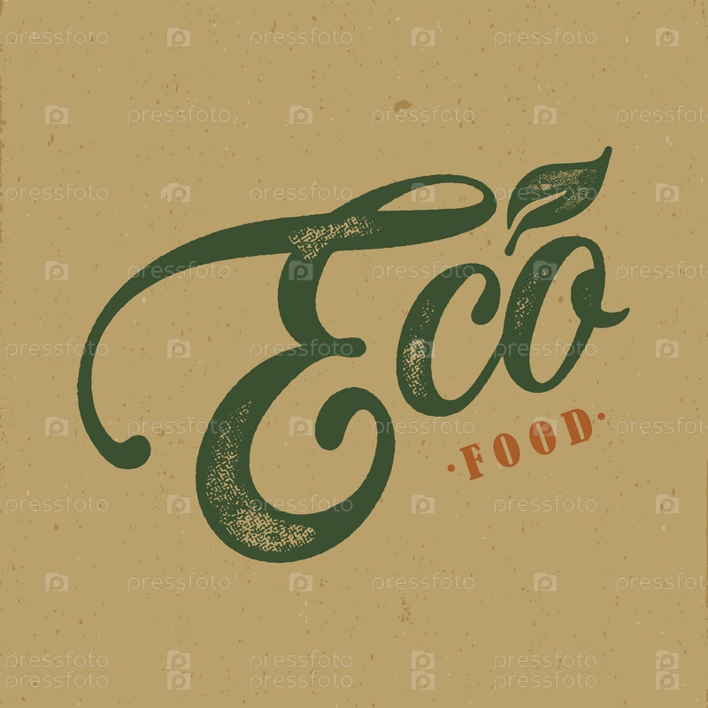 Векторный дизайн эко-пищевой типографии для медицинских центров, органических и вегетарианских магазинов, плакат, логотип. Текст вектора эко еды. Каллиграфические надписи ручной работы. Векторная иллюстрация