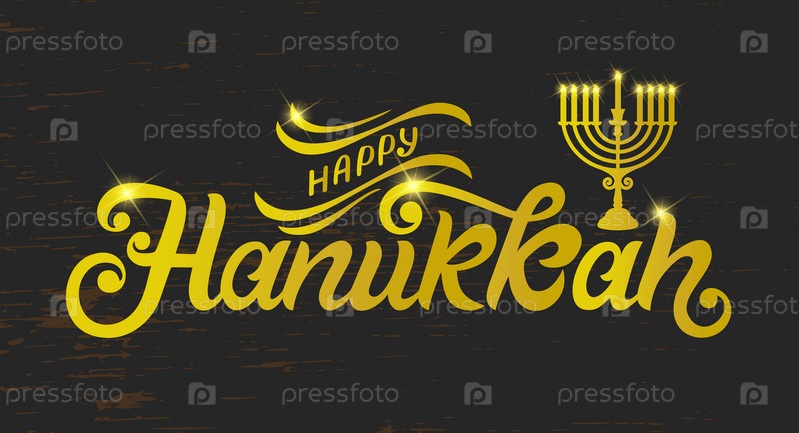 Счастливый векторный дизайн типографии Хануки для поздравительных открыток и празднования шаблона дизайна плаката. Ханука красивая надпись. Красивый фон, размытые праздничные огни. Векторная иллюстрация