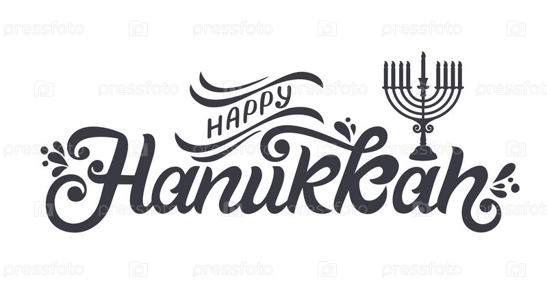 Счастливый векторный дизайн типографии Хануки для поздравительных открыток и празднования шаблона дизайна плаката. Ханука красивая надпись. Красивый фон, размытые праздничные огни. Векторная иллюстрация