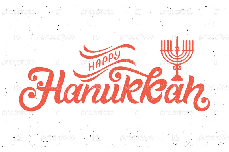 Счастливый векторный дизайн типографии Хануки для поздравительных открыток и празднования шаблона дизайна плаката. Каллиграфические надписи ручной работы. Ханука красивая надпись. Векторная иллюстрация
