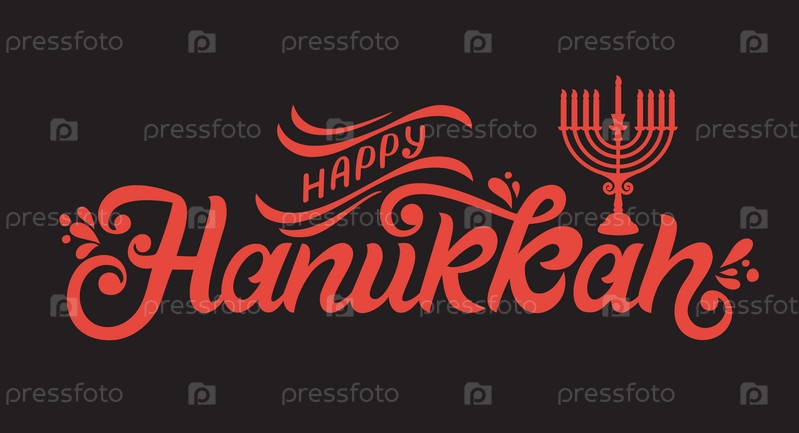 Счастливый векторный дизайн типографии Хануки для поздравительных открыток и празднования шаблона дизайна плаката. Ханука красивая надпись. Красивый фон, размытые праздничные огни. Векторная иллюстрация