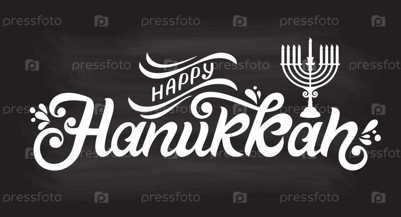 Счастливый векторный дизайн типографии Хануки для поздравительных открыток и празднования шаблона дизайна плаката. Ханука красивая надпись. Красивый фон, размытые праздничные огни. Векторная иллюстрация