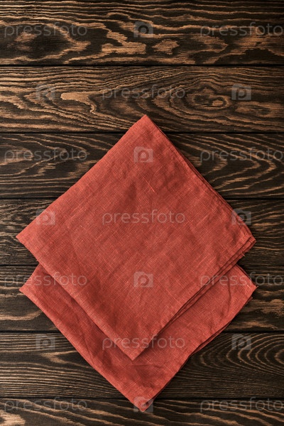 Две сложенные льняные салфетки на деревянном столе с копией пространства, вид сверху