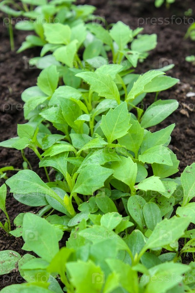 Саженцы георгин в саду. Маленькие ростки георгин. Сад. Цветы