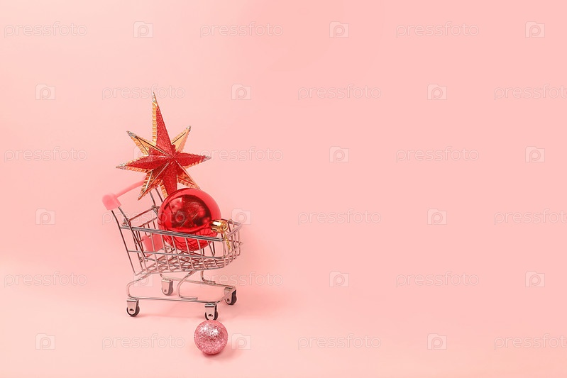 Рождественский и новогодний макет для дизайна продукта и демонстрации, абстрактная концепция продажи, минимальная творческая праздничная композиция с корзиной игрушек для магазина и рекламы, баннер, выборочный фокус