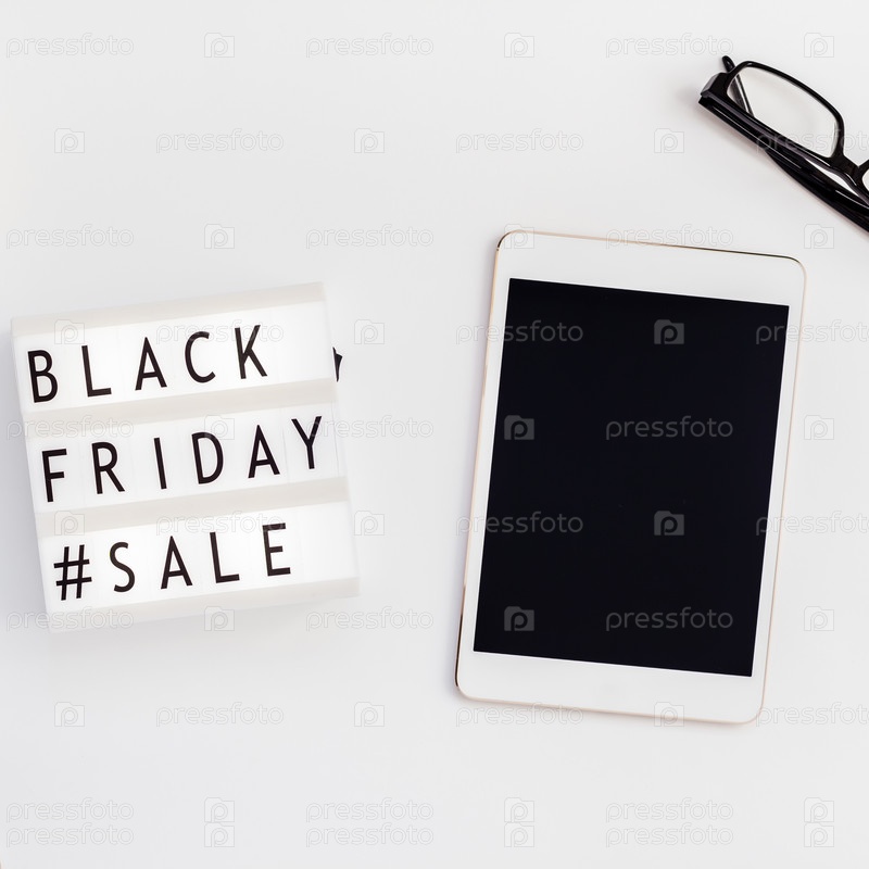 Текст распродажи в черную пятницу на белом лайтбоксе