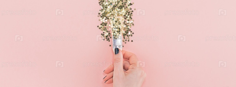 Сюрреалистичная кисть рисует конфетти золотыми звездами