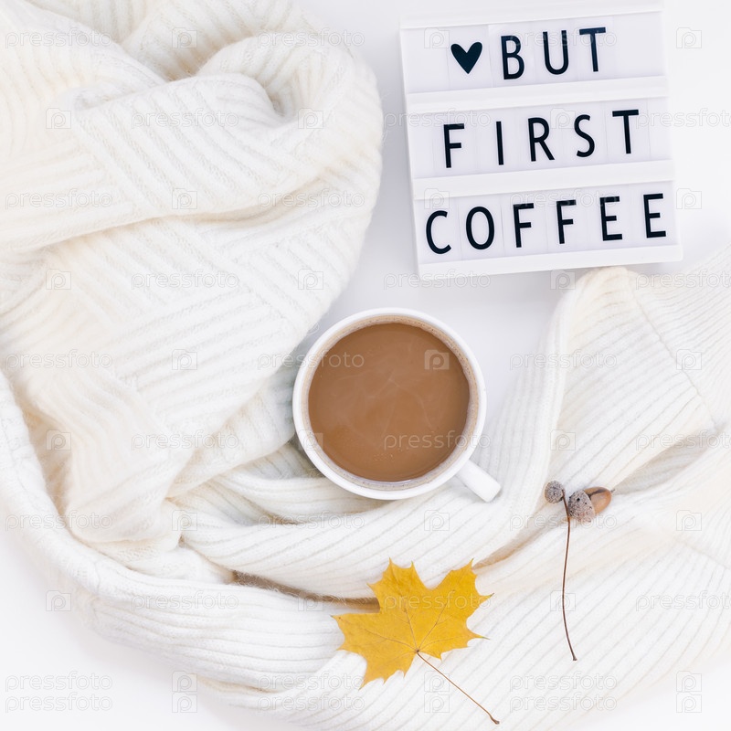 Но первый текст о кофе на лайтбоксе с чашкой кофе