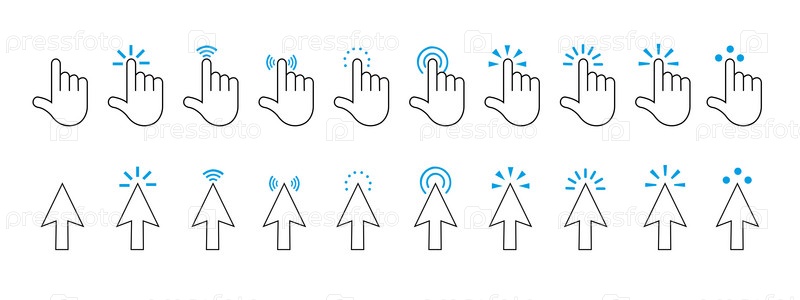 Курсор со стрелкой. Ручной курсор. Векторная иллюстрация. Нажмите. Показатель. Курсор. Стралка