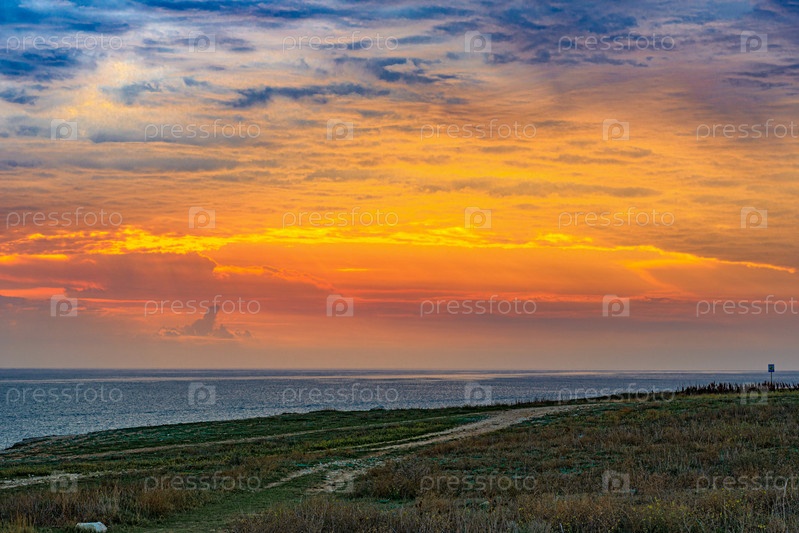 Пейзаж вечернего неба с заходящим солнцем