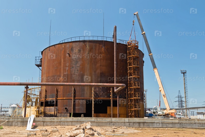 Ремонтные работы по замене нижнего пояса старого ржавого резервуара для хранения нефтепродуктов