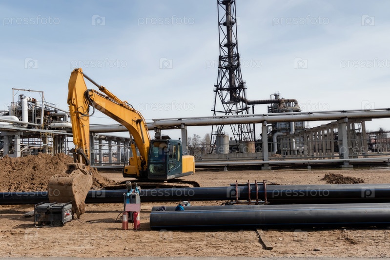 Сварка полипропиленовых труб на НПЗ перед укладкой в траншею