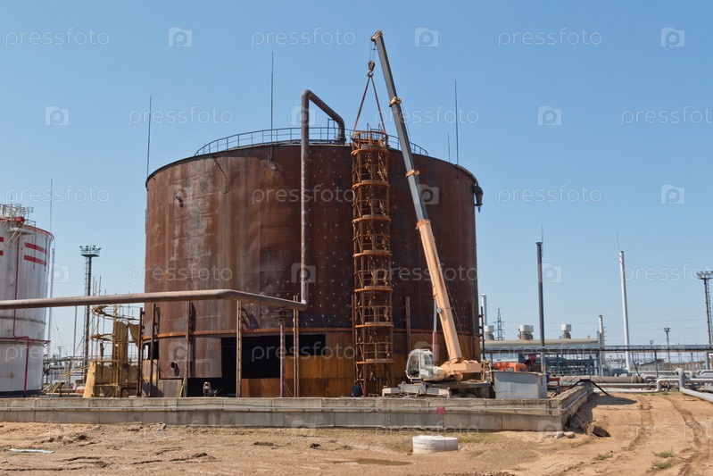 Ремонтные работы по замене нижнего пояса старого ржавого резервуара для хранения нефтепродуктов
