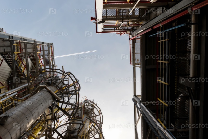 Вид на цех НПЗ снизу вверх