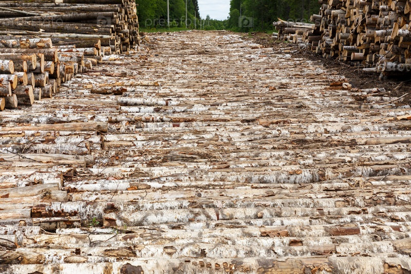 Бревенчатая дорога в лесу