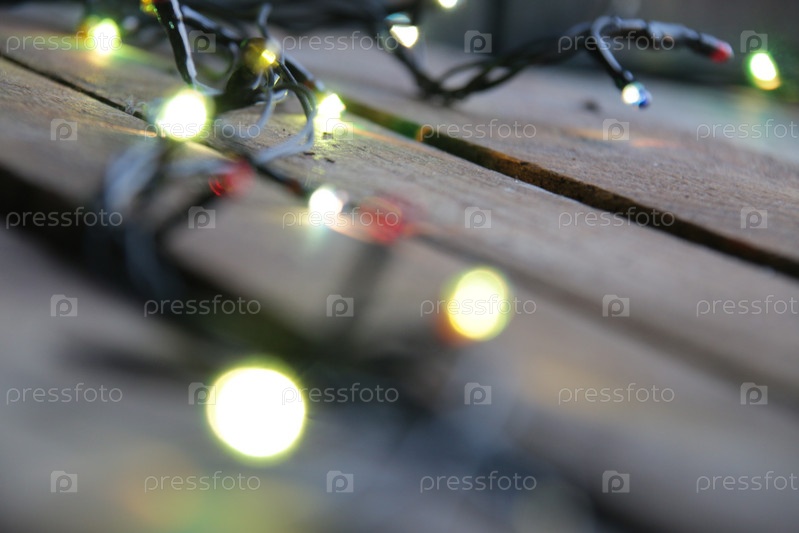 Рождественская гирлянда крупным планом. Новогоднее украшение дома