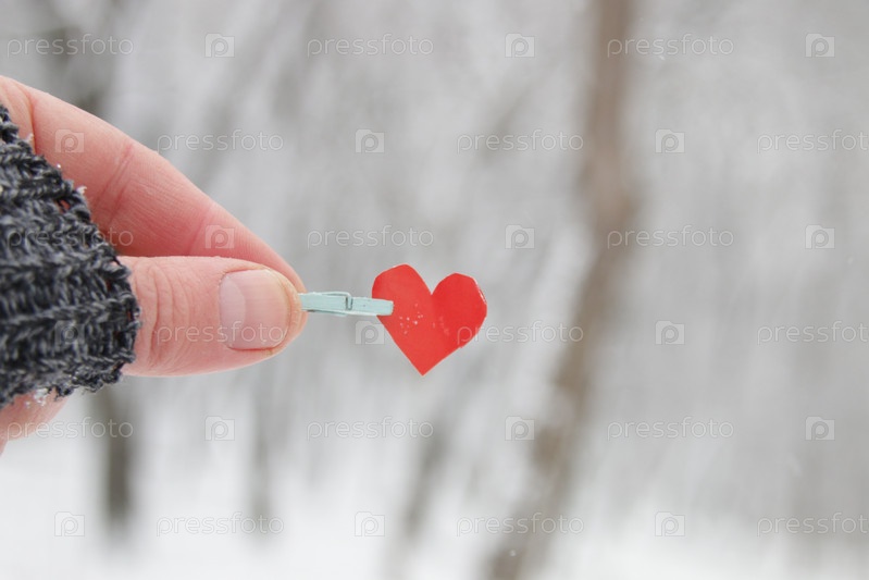 Идея с Днем Святого Валентина. Рука держит бумажное сердце