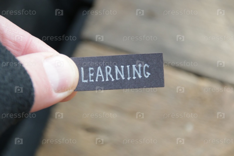 Мужская рука держит бирку с надписью "обучение"