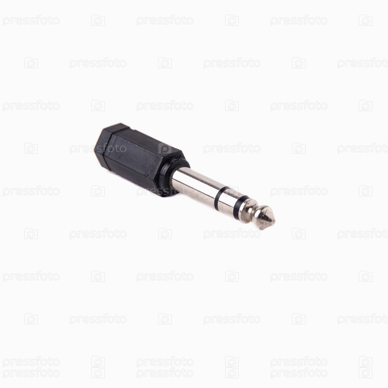 Пластиковый аудиоадаптер minijack для разъема Jack, изолированный на белом фоне