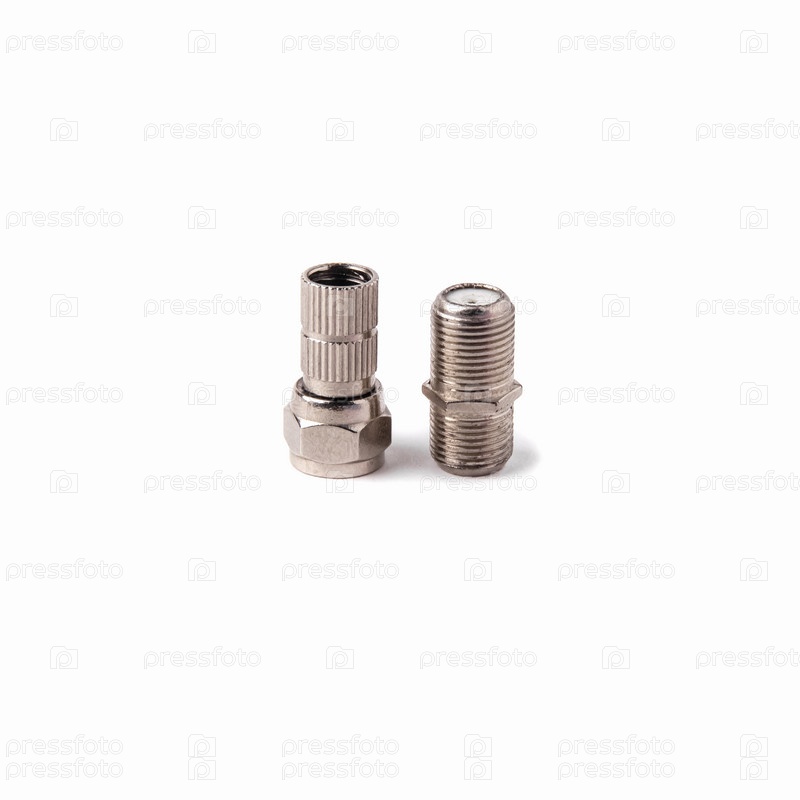 F-rg6 сторона f-типа и гнездовой разъем f изолированы на белом фоне