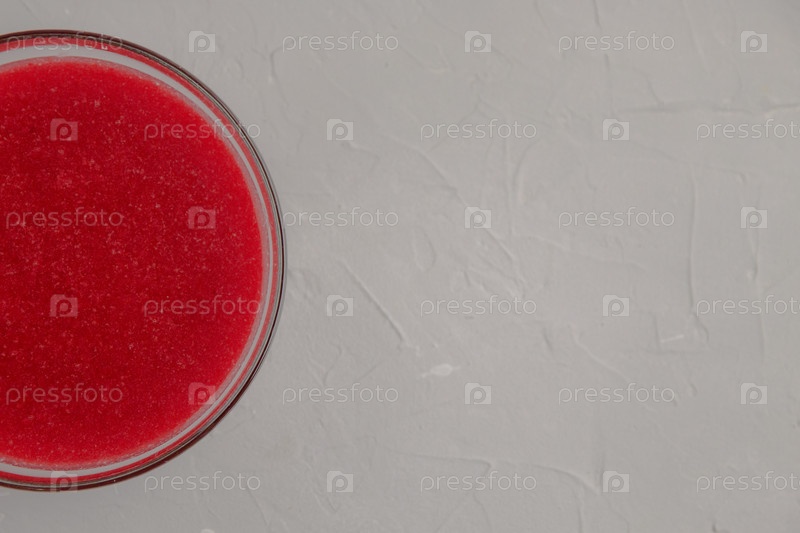 Варенье из калины в стеклянной миске на светло-серой бетонной поверхности с копировальным пространством. Минималистичная концепция, осенний завтрак
