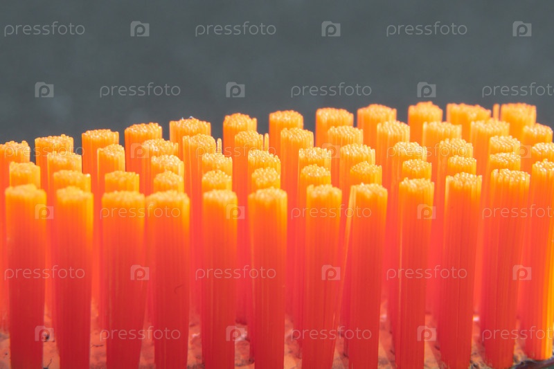 Оранжевые щетинки зубной щетки на макросе