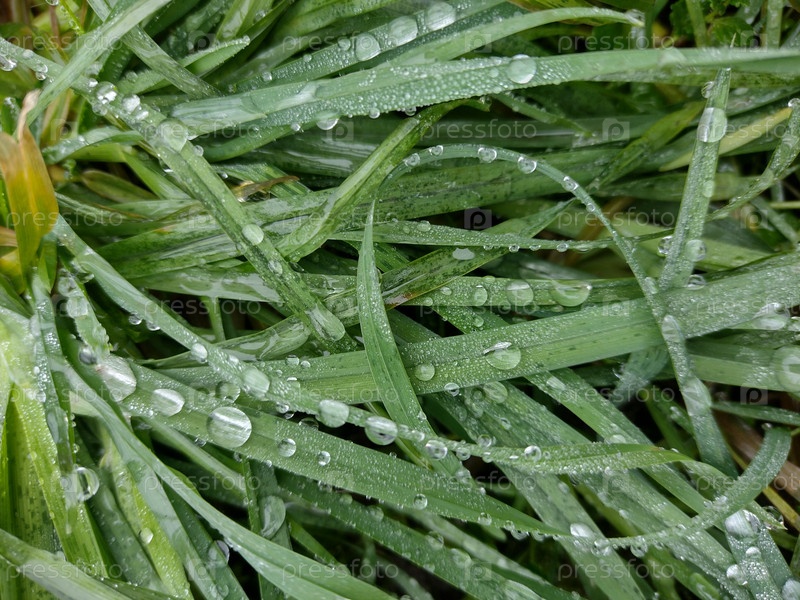 Трава с каплями росы по утрам. Мокрая трава