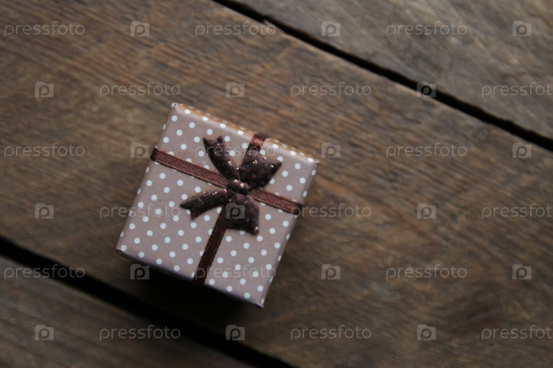 Подарок с лентой на красивом винтажном столе