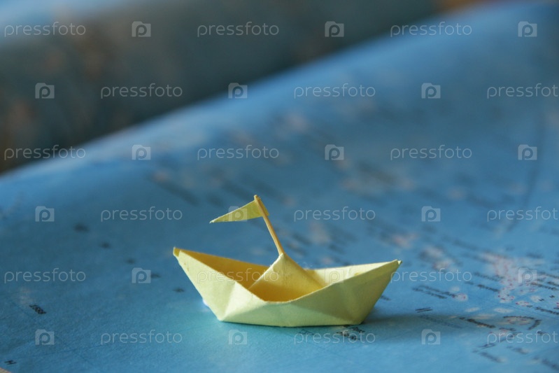 Концепция доставки или летнего путешествия. Бумажный кораблик на карте