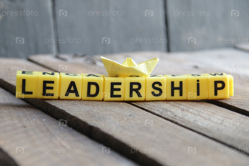 Лидерство. Надпись из кубиков на деревянном фоне