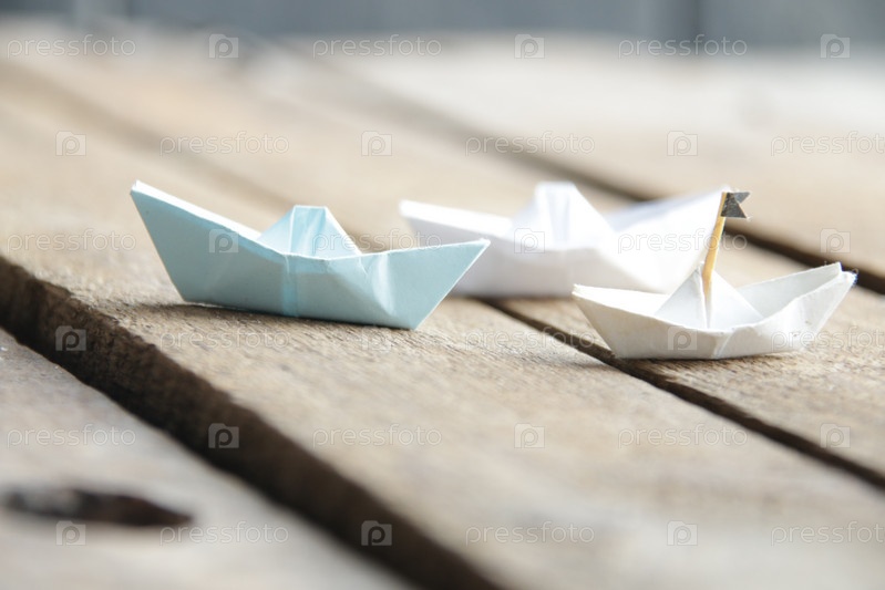 Идея лидерства. Синяя лодка и немного белого на винтажном фоне