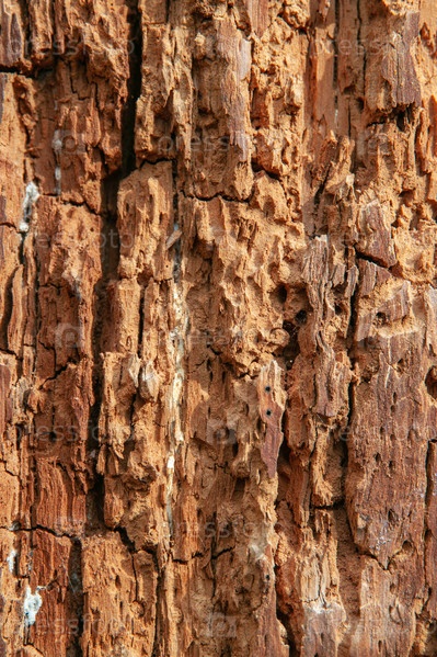 Сухой ствол дерева с отверстиями от насекомых и дятлов