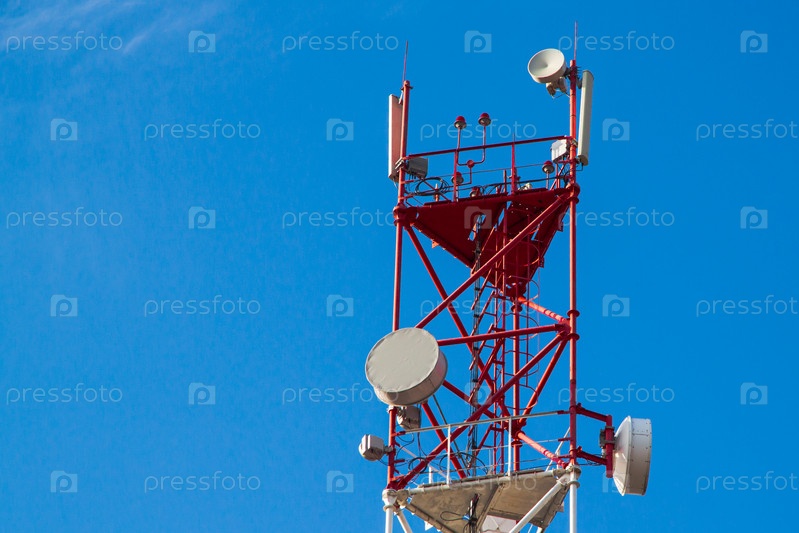 Вышка сотовой связи 4G 5G. подключение к Интернету с голубым небом на заднем плане