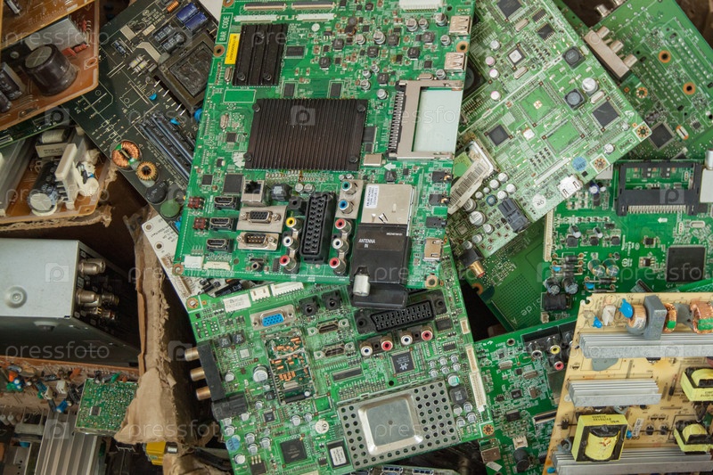 Коробка сломанных материнских плат ЖК-телевизора. Мастерская по ремонту электроники