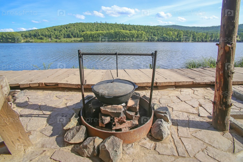 Котел костер на берегу реки