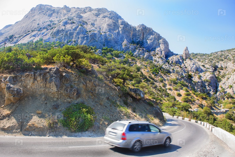Автомобиль движется по извилистой дороге