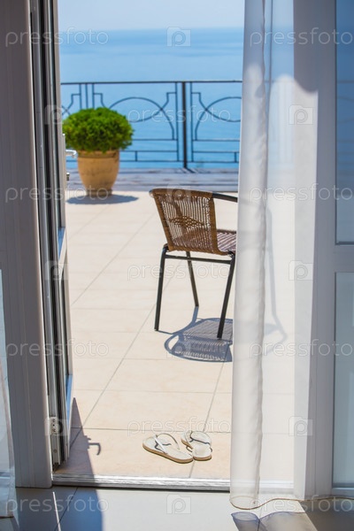 Стул на террасе и морской горизонт