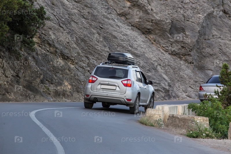 Автомобиль движется по извилистой горной дороге