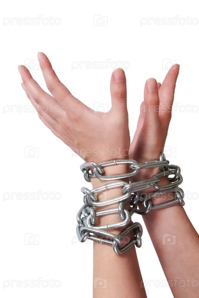 Женские руки связаны изолированной цепью