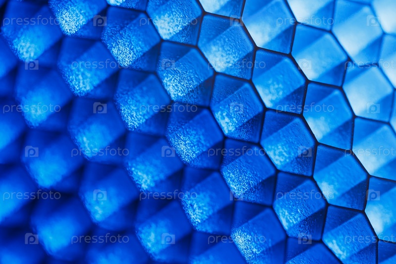 Абстрактный геометрический фон шестиугольных ячеек с голубыми бликами и малой глубиной резкости