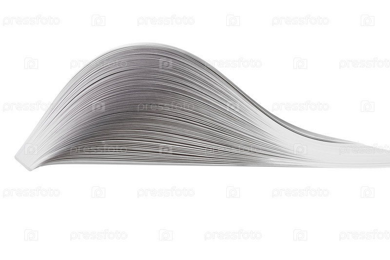 Листы бумаги, сшитые в книгу и изогнутые изогнутой линией на белом фоне