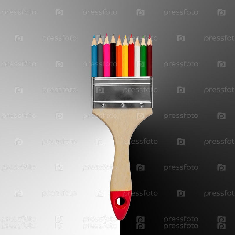 Абстрактная кисть для рисования цветными карандашами вместо щетины на сером градиентном фоне