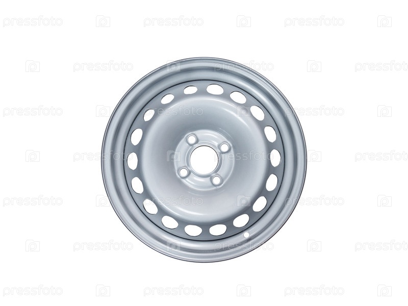 Металлический колесный диск изолированно на белом фоне. Автомобильная запчасть