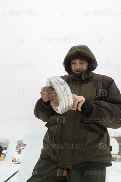 Установщик проверяет исправность светодиодного кабеля