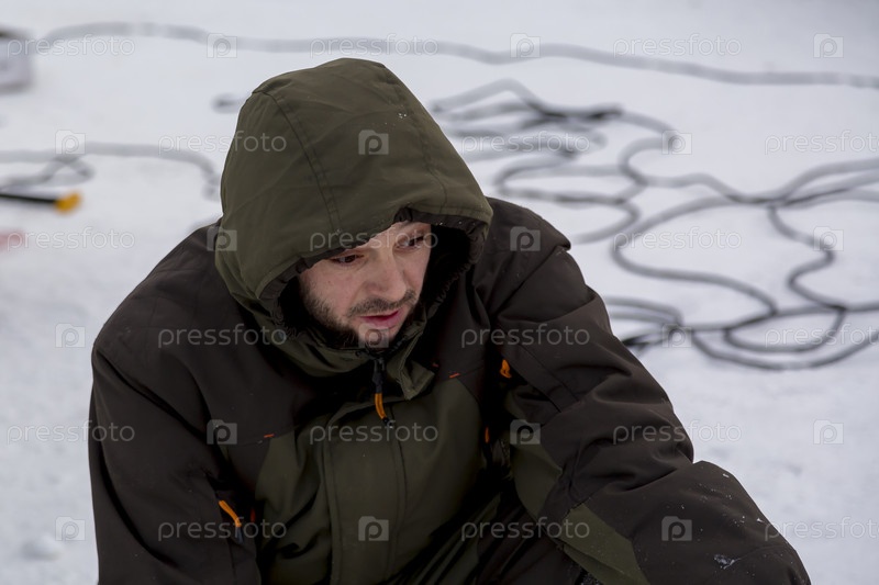 Портрет слесаря в зеленой куртке