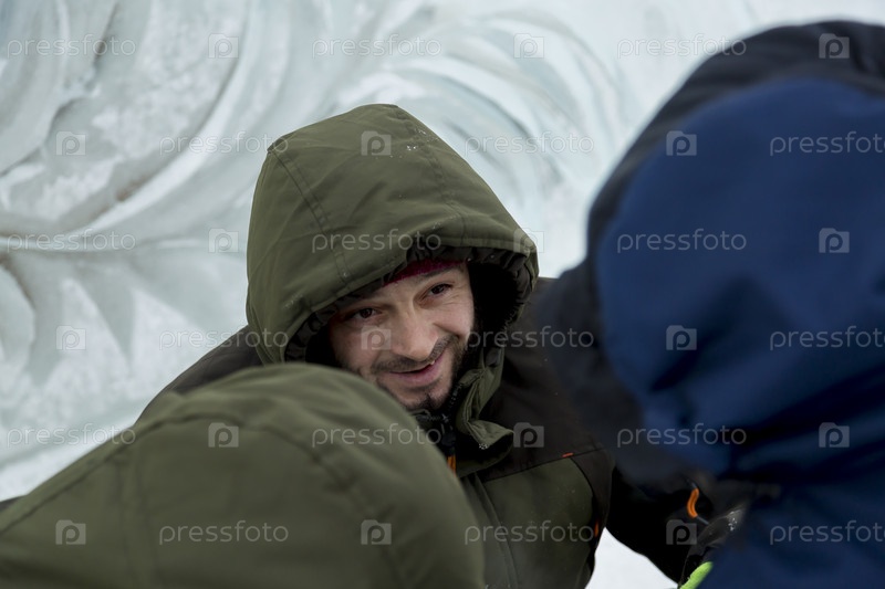Портрет слесаря в зеленой куртке