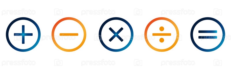 Набор математических знаков. Плюс, минус, умножить, равно. Математические знаки