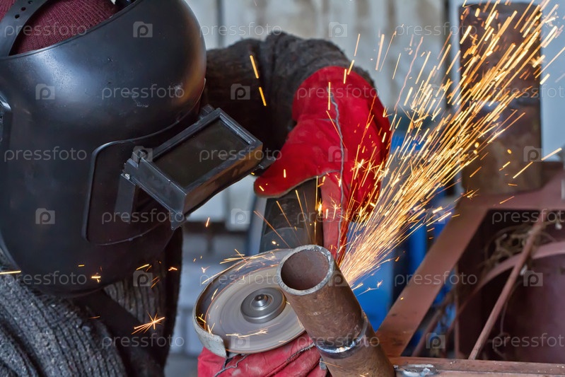 Искры при обработке сварного шва на трубе